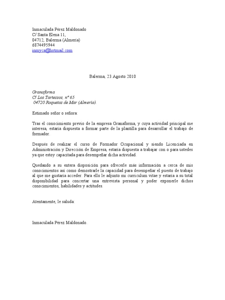 Carta de presentacion from image.slidesharecdn.com Una carta de presentación siempre debe estar personalizada, no es correcto elaborar un machote de carta que. Estos ejemplos de cartas de presentación te ayudarán a añadir a tu currículum la carta perfecta. Es muy importante que la carta de presentación para un primer empleo la redactes exponiendo tu valía, tus aspiraciones, habilidades y.